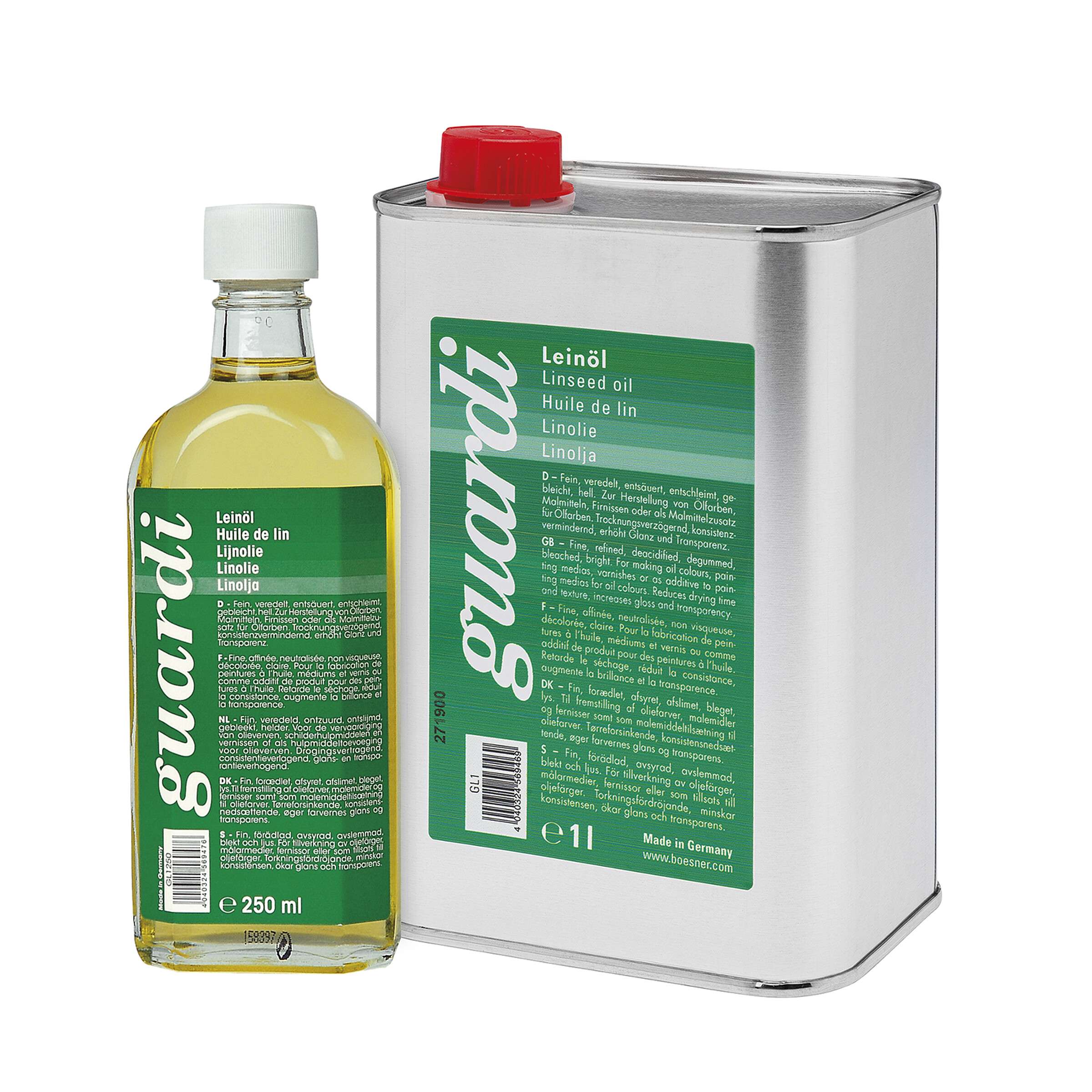Feines, veredeltes, entsäuertes, entschleimtes, gebleichtes, helles und dünnflüssigiges trocknendes Öl. Zur Selbstherstellung von Ölfarben, Malmitteln und Firnissen sowie als Malmittelzusatz zu Ölfarben. Konsistenzerniedrigend,...